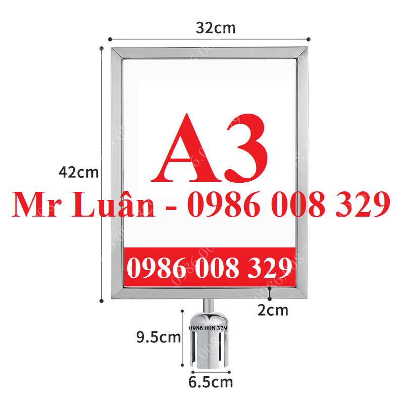 - Hiện bảng thông báo cắm lên đầu trụ inox bao gồm những kích thước sau :